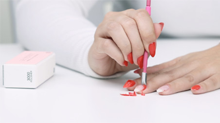 Apply a thin coat of Gel Polish. Avoid getting any polish on skin or cuticles. For best results, apply polish over edge of nail too (capping).