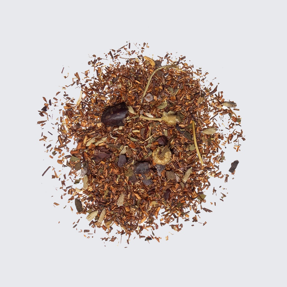 With a base of Egyptian chamomile and South African rooibos, a hint of French lavender and a kiss of Dominican dark chocolate, this is a mix of pure decadence and tranquility, the perfect recipe to wipe away a long, hard day. As you prepare for a relaxing evening, this herbal tea will help set the mood.