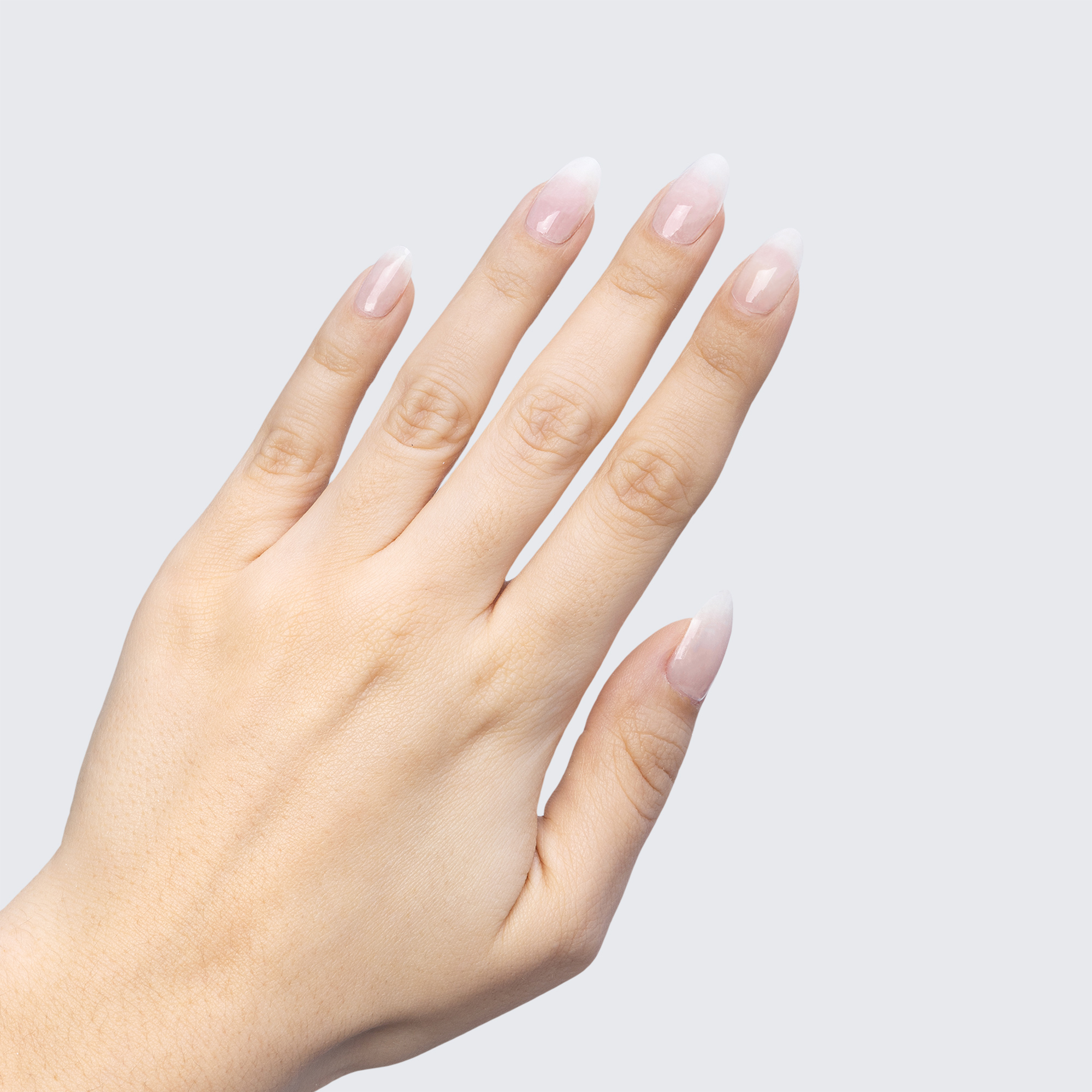 Ombré French tip. White. Opaque to translucent. Neutral undertone.